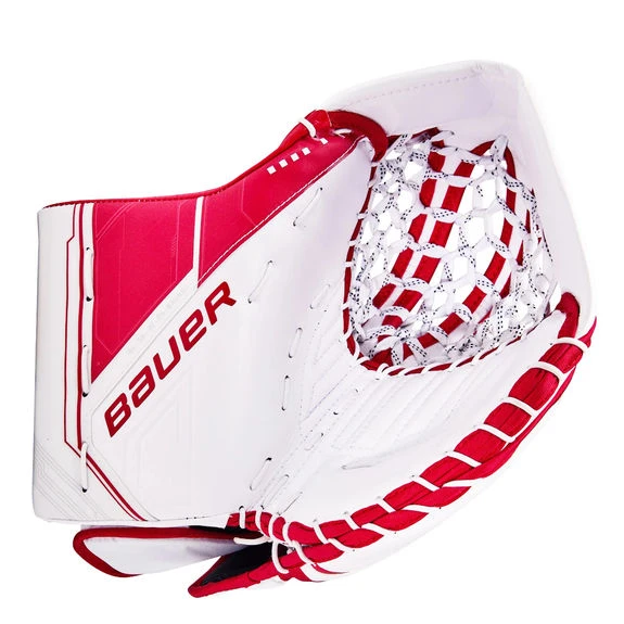 – Fermeture :. Bauer a ajouté une sangle de levier en néoprène pour améliorer cette ouverture complète dans la partie du pouce. Le gant comprend également une sangle Range of Motion (R.O.M.) conçue pour maintenir la mitaine attachée à votre main tout en permettant un bon mouvement du poignet. Il est conçu pour se verrouiller confortablement et plus près de votre main, c’est ainsi qu’il peut offrir autant de mouvement du poignet.